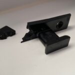 Bei der Oberfräse (Makita RT0700) waren verschiedene „Handstücke“ dabei. Bei einem lässt sich auch der Neigungswinkel verstellen und so schien es mir die beste Wahl für den Einsatz im Fränkisch zu sein. Das Handstück konnte ich online als 3D-Modell (Link hab ich leider nicht mehr) finden und konnte so in Fusion 360 die Bohrlöcher genau bestimmen.