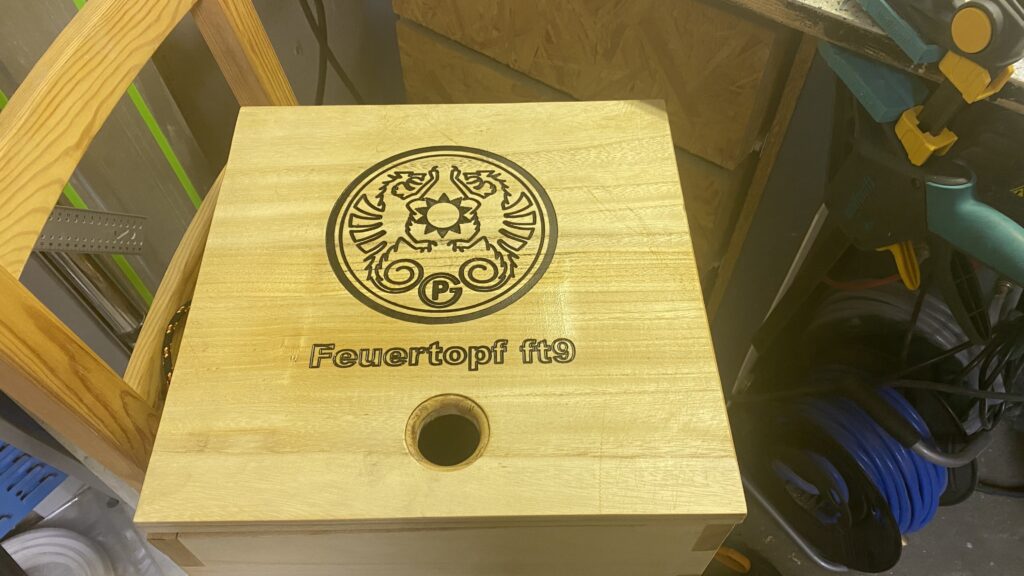 Das Petromaxx-Logo hatte ich mir aus dem Netz gezogen und in die Shaper geladen. Nachdem ich alles fertig hatte: „FT“ hätte ich mir sparen können – das ist die Herstellerabkürzung für den Feuertopf 🙄.