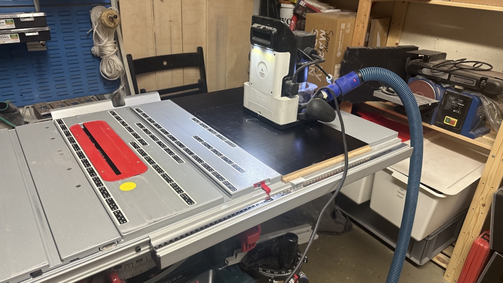 Der Umbau funktioniert hervorragend und hat meine Werkstatt erheblich aufgewertet. Einzig ein ordentlicher Ein- und Ausschalter sowie die Absaugung an zwei Punkten (Fräse und Fräsanschlag) mit OSVac fehlen noch, um das Setup komplett zu machen. Diese letzten Details stehen jedoch bereits auf meiner To-Do-Liste.